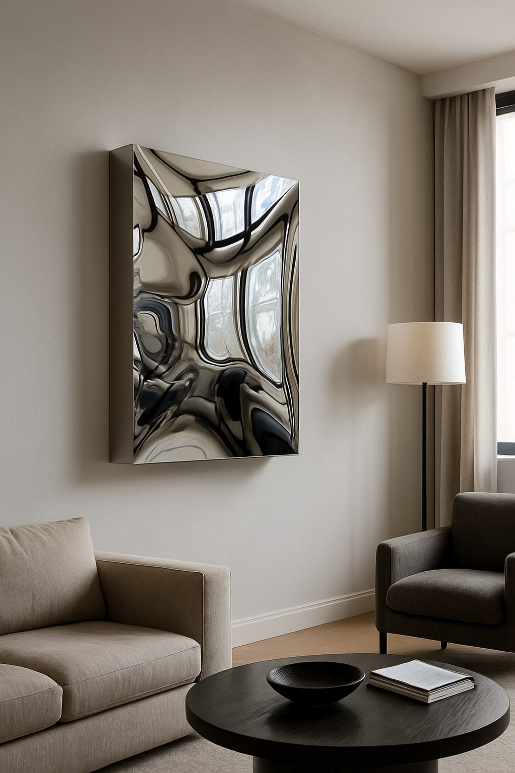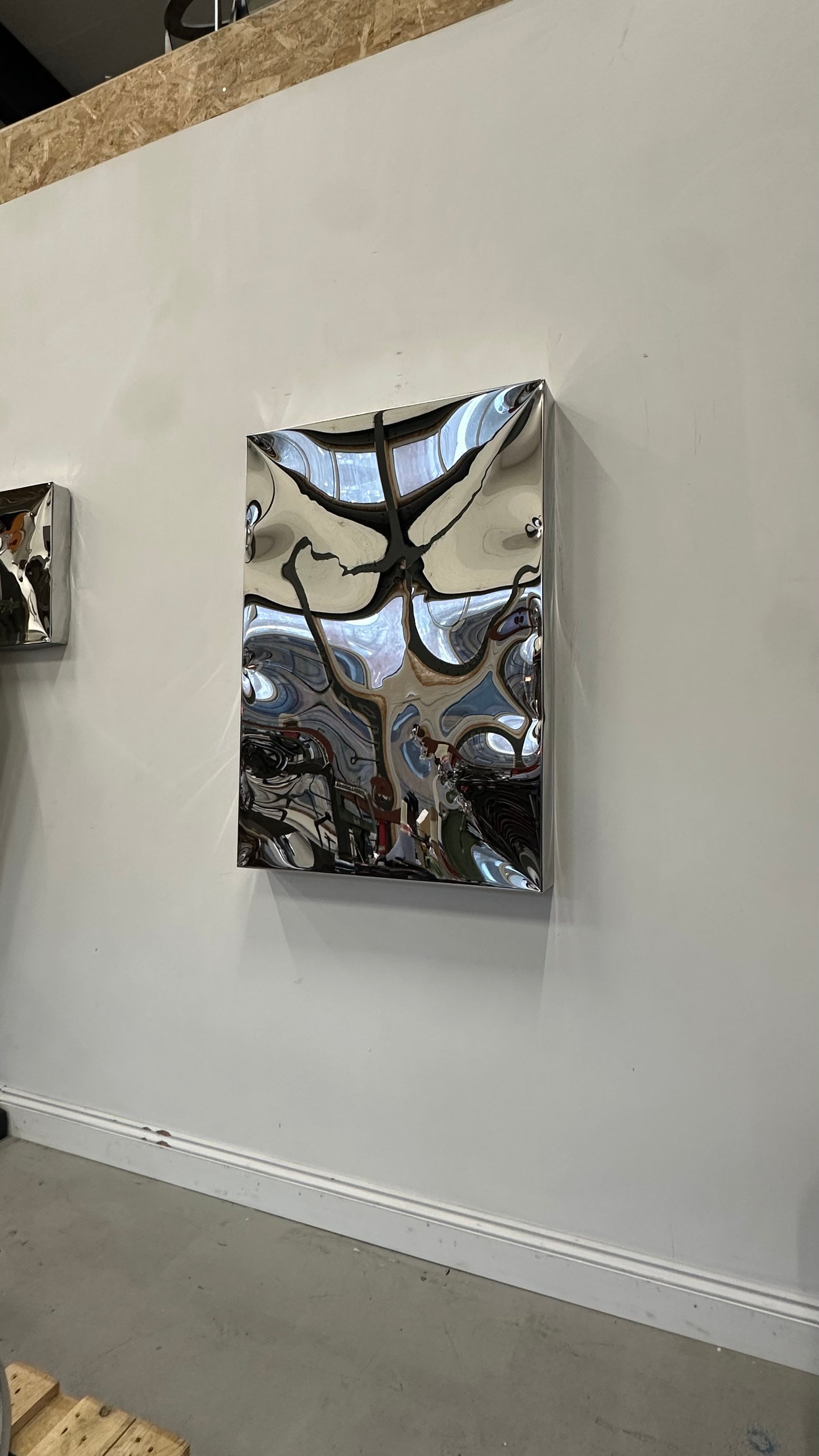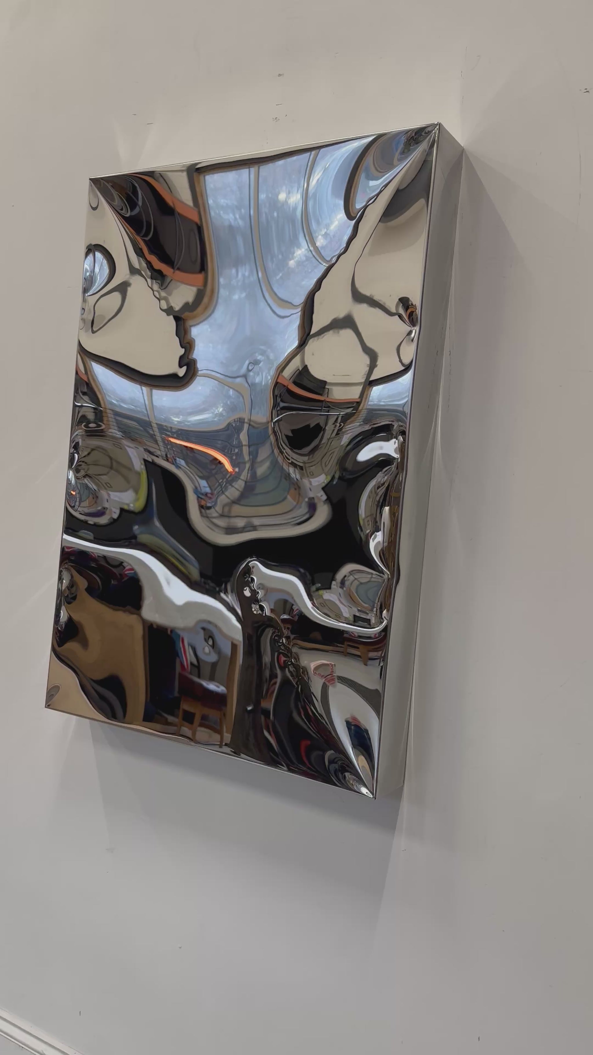 Formed from high-grade stainless steel and polished to a flawless reflective finish, this sculptural artwork catches and bends light beautifully throughout the day. At 80 mm deep, the piece creates striking dimensionality on the wall, enhancing shadows, reflections, and the sense of movement within the surface.